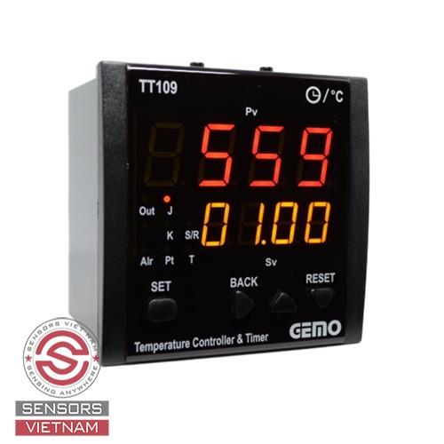 Bộ điều khiển nhiệt độ PID tích hợp TIMER với ngõ ra SSR TT109-230VAC-S của hãng GEMO - TURKEY là bộ điều khiển nhiệt độ có kích thước 96x96 mm nhỏ gọn được sử dụng để điều khiển nhiệt độ trong các ứng dụng công nghiệp hoặc giám sát, điều khiển thiết bị khác bằng cách so sánh tín hiệu từ cảm biến với điểm đặt và thực hiện các phép tính theo độ lệch giữa các giá trị đó.