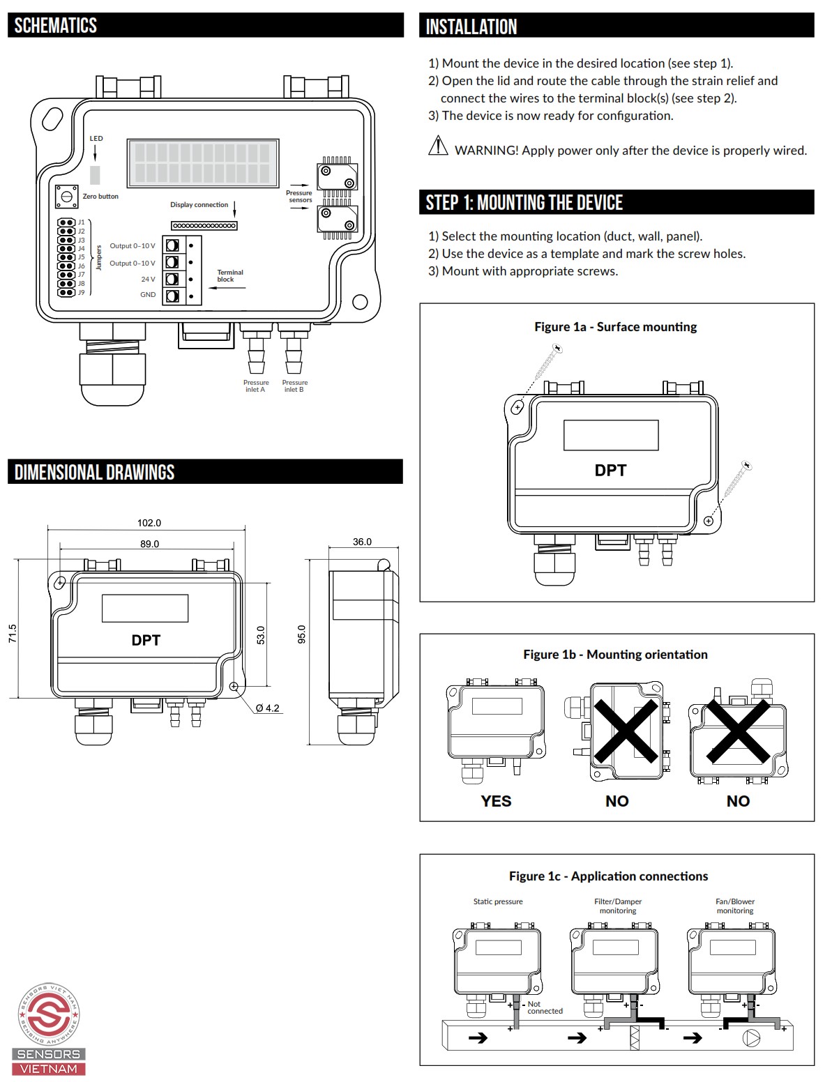 Cảm biến chênh áp thông thường chúng ta chỉ đo được 1 giá trị chênh áp và 1 ngõ ra thì với cảm biến chênh áp 2 kênh DPT-DUAL chúng ta đo được 2 giá trị chênh áp khác nhau với 2 tín hiệu ngõ ra riêng biệt. Điều này giúp tiết kiệm chi phí lắp đặt, dây dẫn và số lượng cảm biến chênh áp cần lắp đặt cho tòa nhà, ống gió.