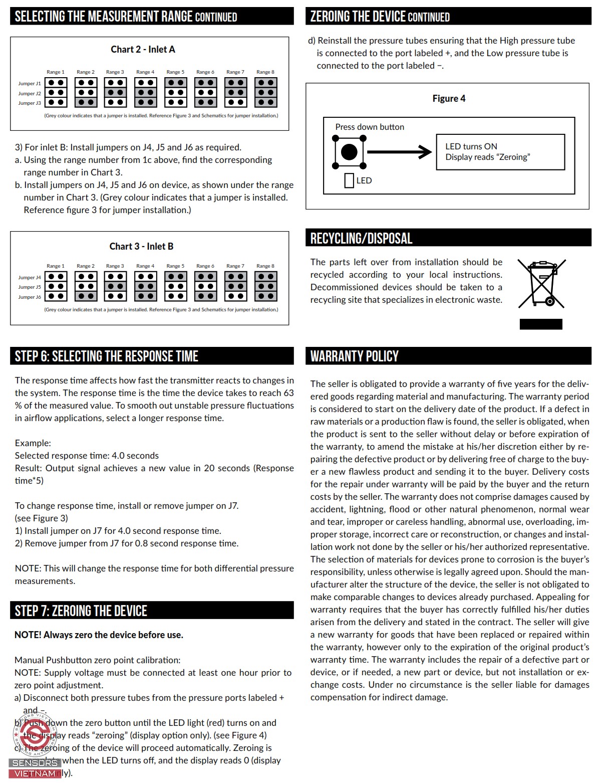 - Dải đo chênh áp tùy chỉnh: ±100, 100, 250, 500 Pa 1000, 1500, 2000, 2500 Pa