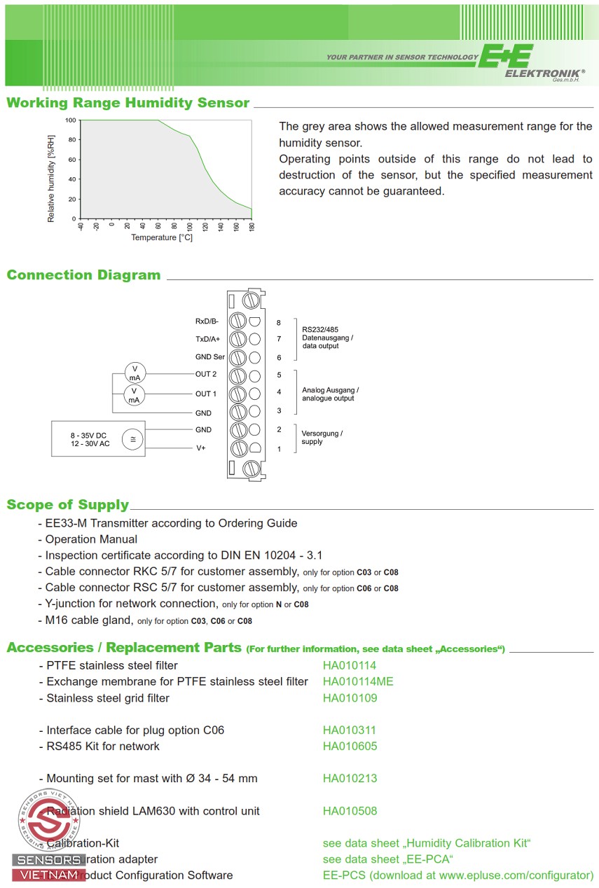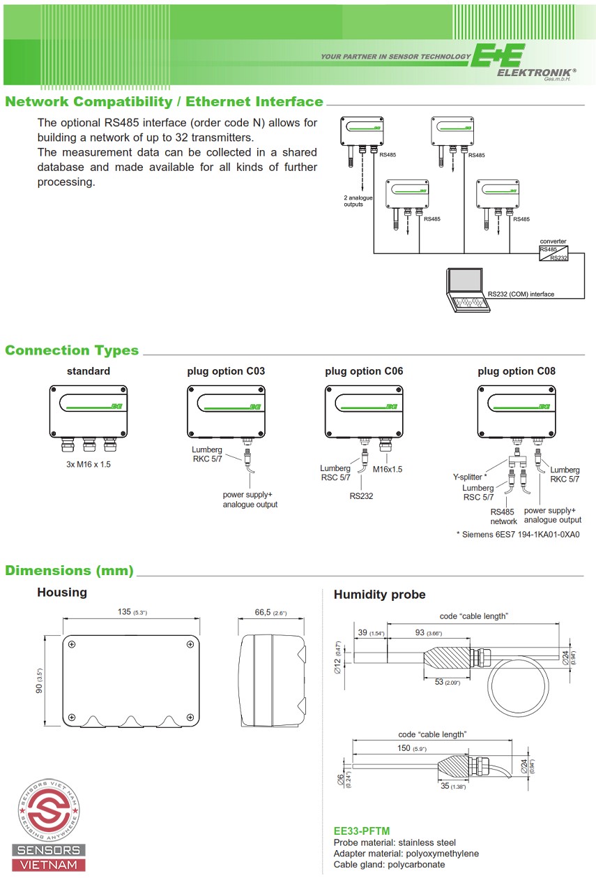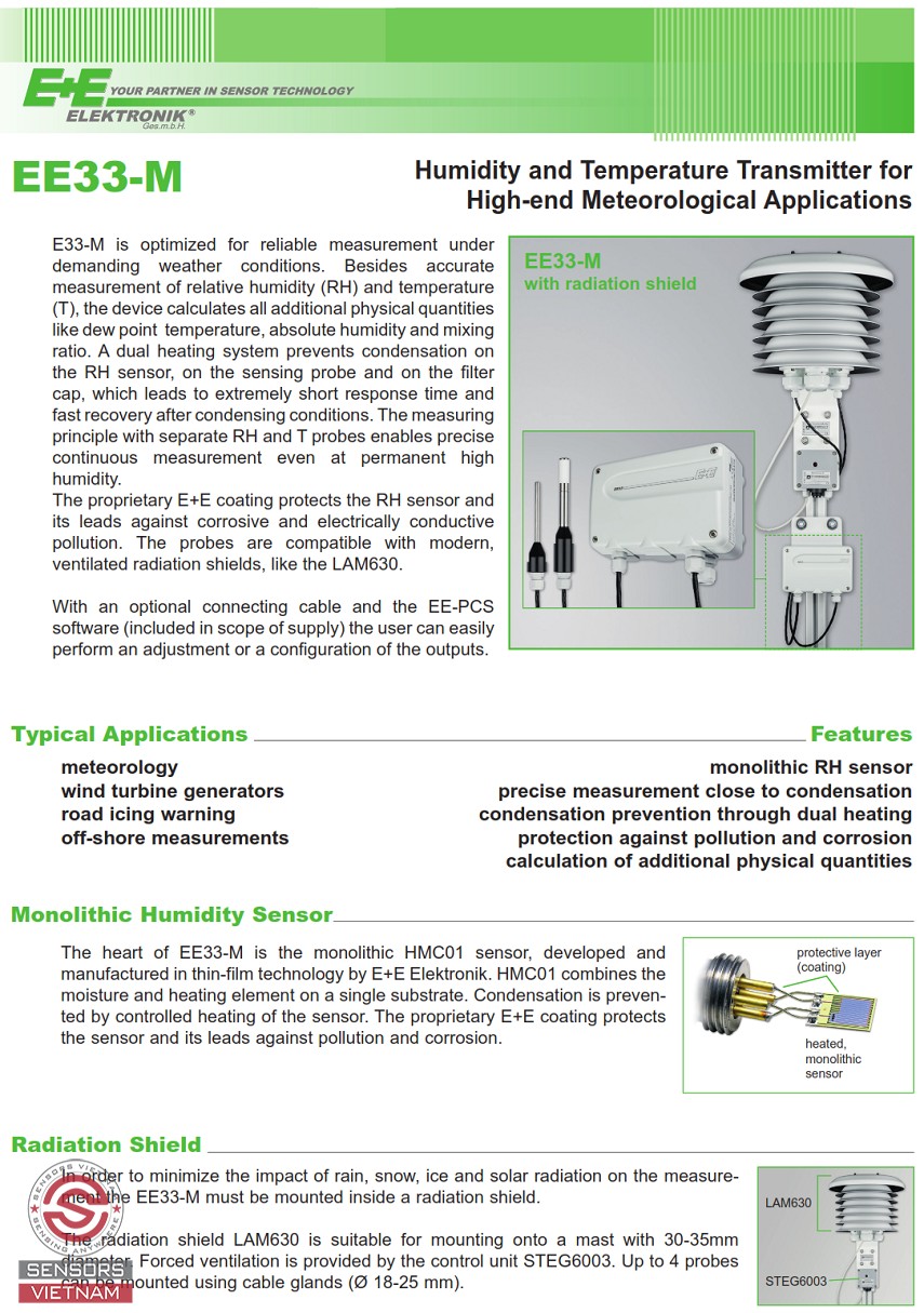 CẢM BIẾN NHIỆT ĐỘ VÀ ĐỘ ẨM NGÀNH KHÍ TƯỢNG EE33-M, CẢM BIẾN NHIỆT ĐỘ CHO MÔI TRƯỜNG ĐỘ ẨM CAO, CẢM BIẾN NHIỆT ĐỘ VÀ ĐỘ ẨM CHO NGÀNH KHÍ TƯỢNG, CẢM BIẾN ĐO NHIỆT ĐỘ VÀ ĐỘ ẨM CHO MÔI TRƯỜNG Ô NHIỄM , CẢM BIẾN NHIỆT ĐỘ ĐIỂM SƯƠNG, CẢM BIẾN NHIỆT ĐỘ VÀ ĐỘ ẨM E+E.