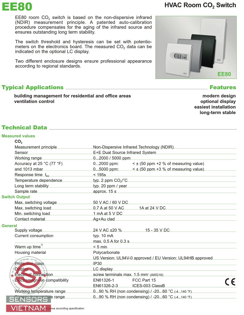 Sensors Việt Nam chuyên phân phối cảm biến CO2 E+E ELEKTRONIK EE80, cung cấp cảm biến CO2 ELEKTRONIK , Cảm biến CO2 cho tòa nhà, Cảm biến CO2 , Cảm biến CO2 ELEKTRONIK giá rẻ chất lượng tốt nhất, cảm biến CO2 chất lượng cao, cảm biến CO2 chống cháy nổ, cảm biến CO2 dải đo 2000 ppm, cảm biến CO2 dải đo 5000 ppm, cảm biến CO2 dải đo 10000 ppm, đại lý cảm biến khí CO2 EE80, EE82, EE85, EE800, EE820, EE850, EE870.
