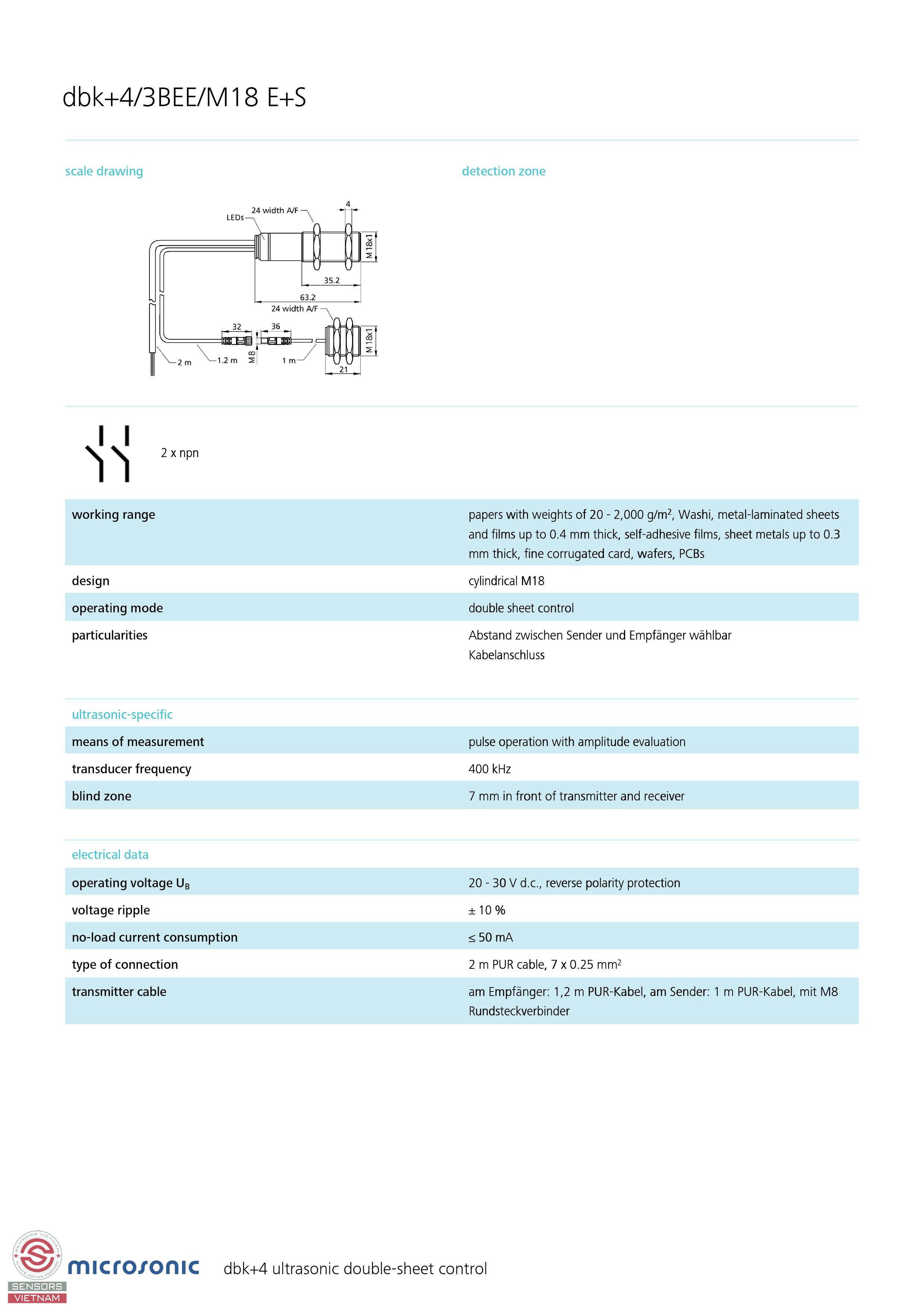 Cảm biến Double-sheet dbk+4/3BEE/M18 E+S