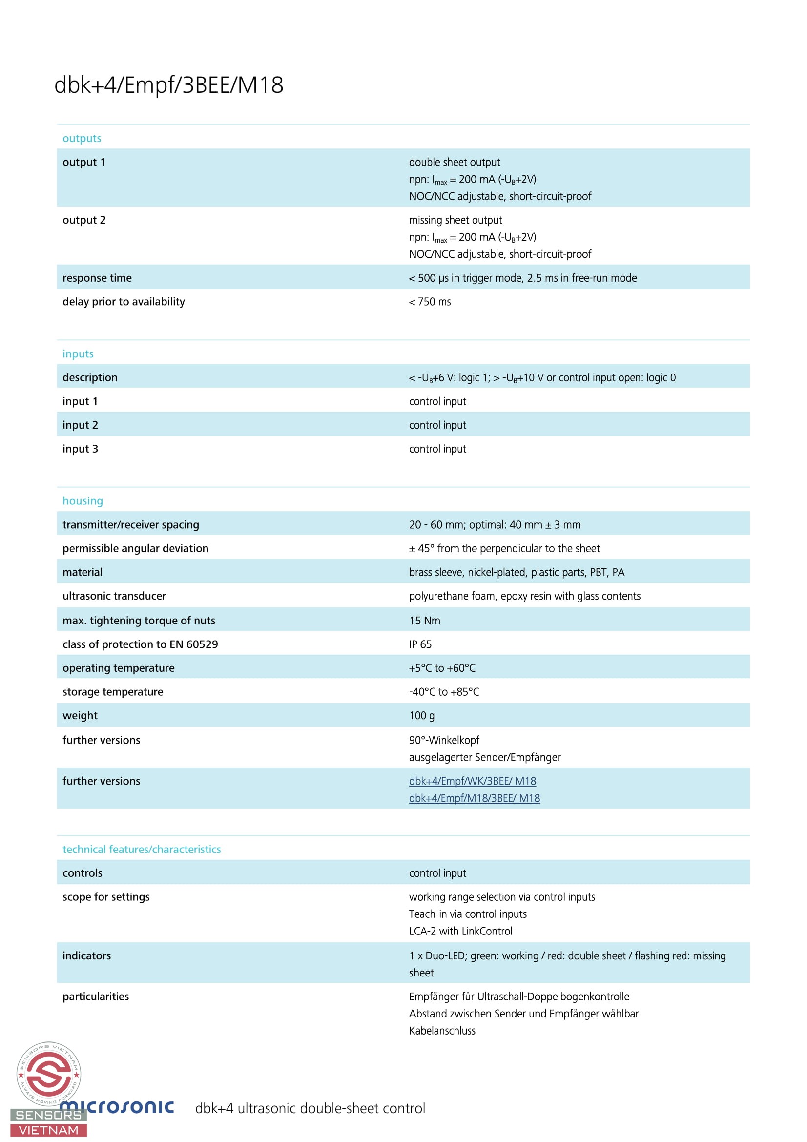 Cảm biến Double-sheet dbk+4/Empf/3BEE/M18