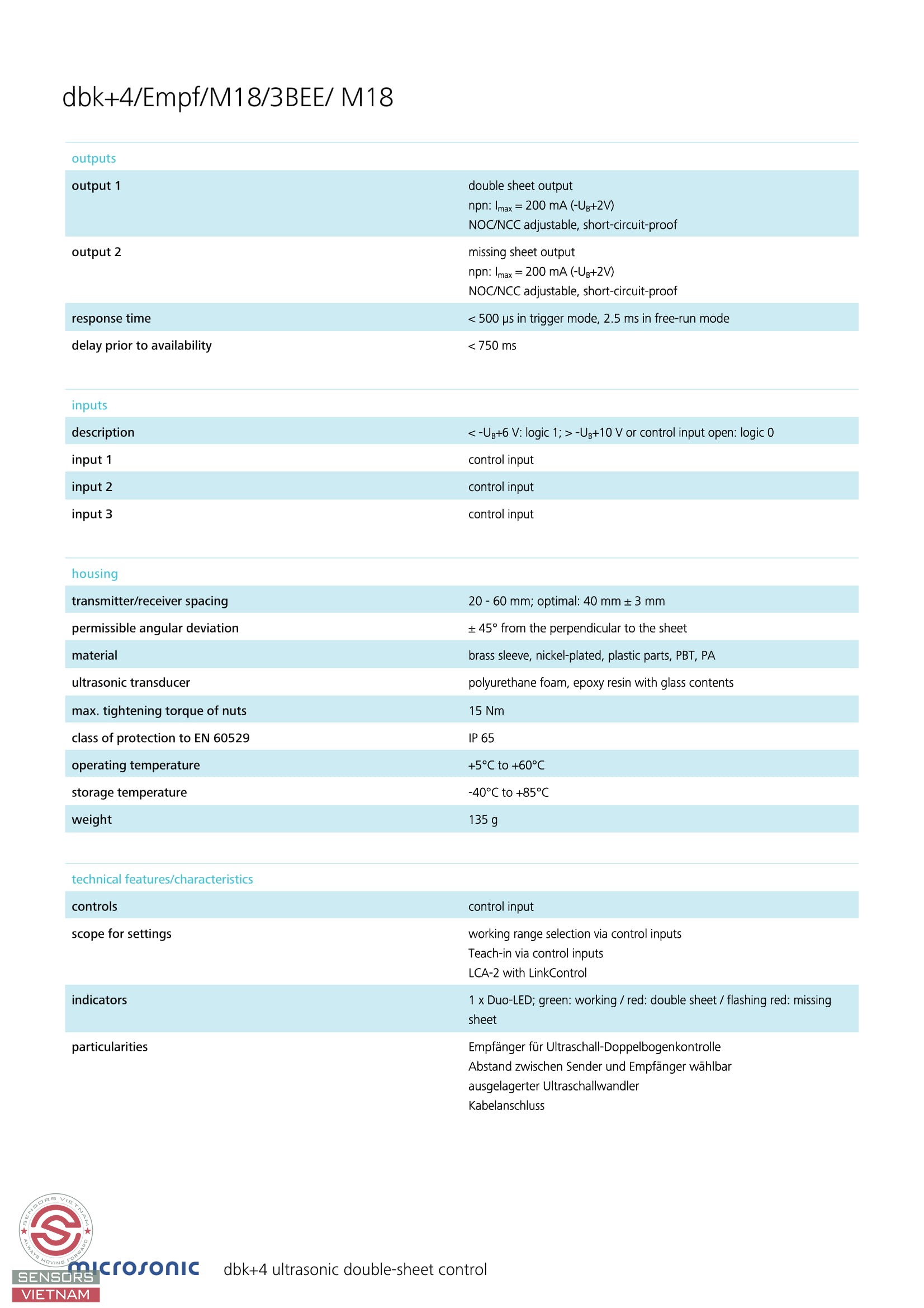 Cảm biến Double-sheet dbk+4/Empf/M18/3BEE/M18