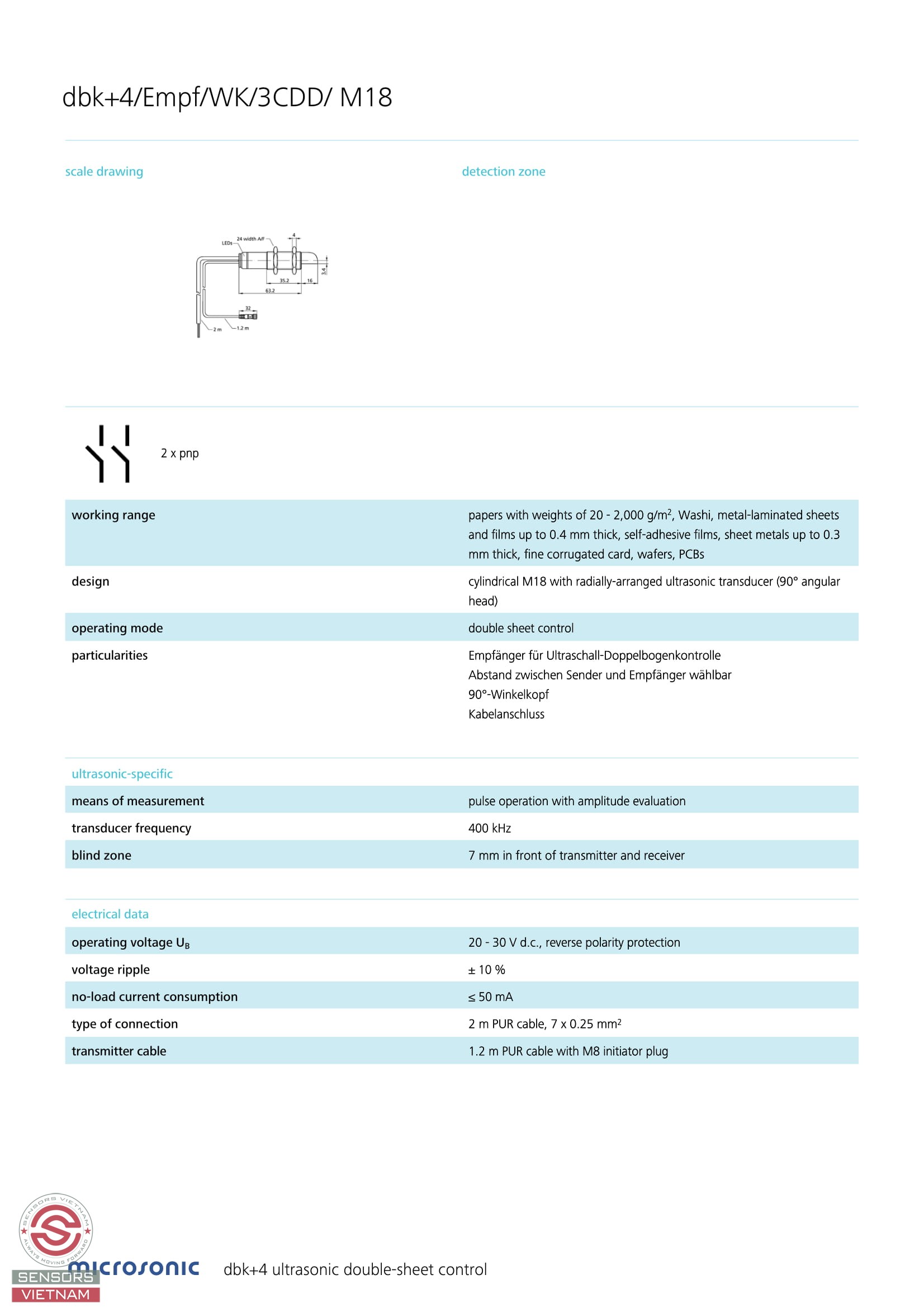 Cảm biến Double-sheet dbk+4/Empf/WK/3CDD/M18