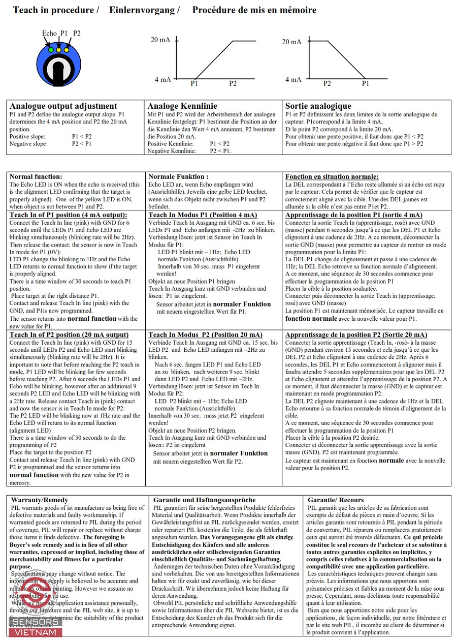 Trên thị trường hiện nay có rất nhiều hãng cảm biến siêu âm trong đó PIL SENSOREN GMBH là hãng cảm biến siêu âm nổi tiếng trên toàn thế giới với lịch sử phát triển hàng trăm năm với giá cả cạnh tranh và chất lượng Đức. Cảm biến siêu âm đo mức nước PIL P43 là dòng cảm biến siêu âm nhỏ gọn, chất lượng cao của PIL - Germany.