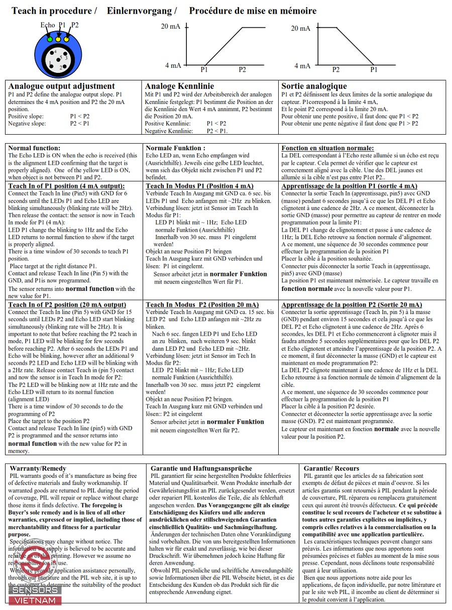 Trên thị trường hiện nay có rất nhiều hãng cảm biến siêu âm trong đó PIL SENSOREN GMBH là hãng cảm biến siêu âm nổi tiếng trên toàn thế giới với lịch sử phát triển hàng trăm năm với giá cả cạnh tranh và chất lượng Đức. Cảm biến siêu âm đo mức nước PIL P43 là dòng cảm biến siêu âm nhỏ gọn, chất lượng cao của PIL - Germany.
