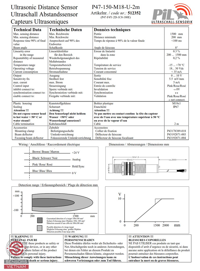 Trên thị trường hiện nay có rất nhiều hãng cảm biến siêu âm trong đó PIL SENSOREN GMBH là hãng cảm biến siêu âm nổi tiếng trên toàn thế giới với lịch sử phát triển hàng trăm năm với giá cả cạnh tranh và chất lượng Đức. Cảm biến siêu âm đo mức nước PIL P47 là dòng cảm biến siêu âm nhỏ gọn, chất lượng cao của PIL - Germany.