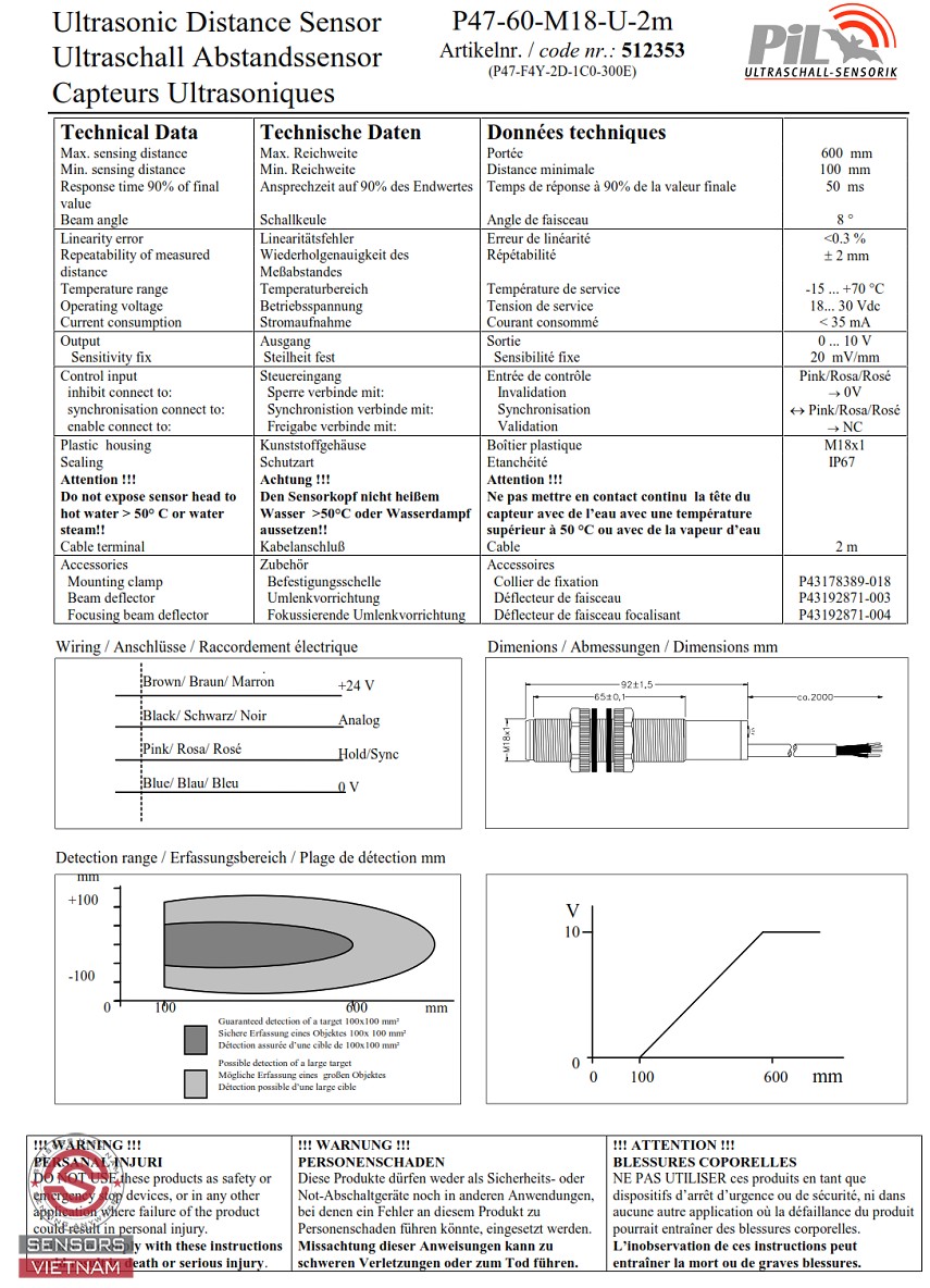 Trên thị trường hiện nay có rất nhiều hãng cảm biến siêu âm trong đó PIL SENSOREN GMBH là hãng cảm biến siêu âm nổi tiếng trên toàn thế giới với lịch sử phát triển hàng trăm năm với giá cả cạnh tranh và chất lượng Đức. Cảm biến siêu âm đo mức nước PIL P47 là dòng cảm biến siêu âm nhỏ gọn, chất lượng cao của PIL - Germany.