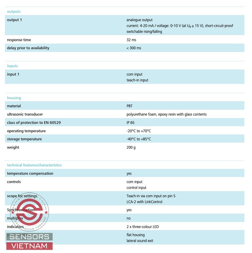 Cảm biến siêu âm với tín hiệu output dạng Analog 4-20mA/0-10V, Cảm biến siêu âm với tín hiệu output dạng PNP hoặc NPN ..thích hợp điều khiển và giám sát mức. Cảm biến với chế độ Push-Pull hỗ trợ chế độ liên kết SIO và IO.