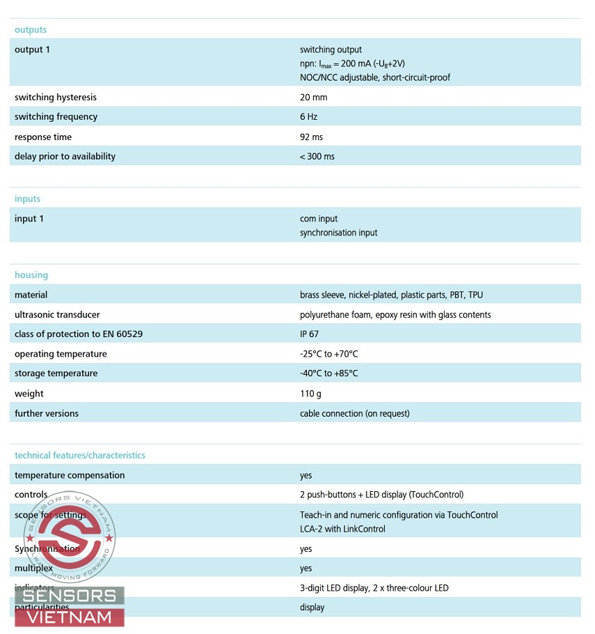 THÔNG SỐ KỸ THUẬT CỦA CẢM BIẾN SIÊU ÂM MIC+130/E/TC MICROSONIC NHƯ SAU: