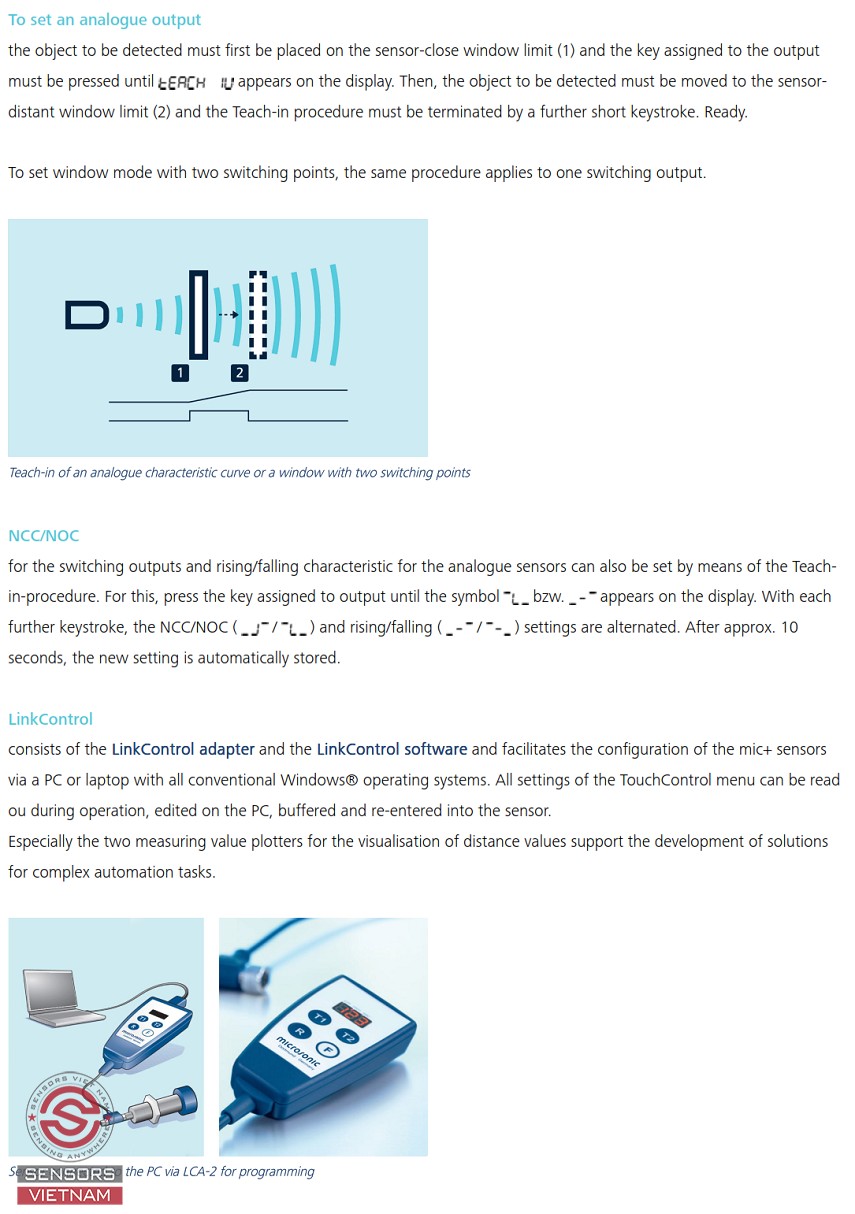 THÔNG SỐ KỸ THUẬT CỦA CẢM BIẾN SIÊU ÂM MIC+25 MICROSONIC NHƯ SAU: