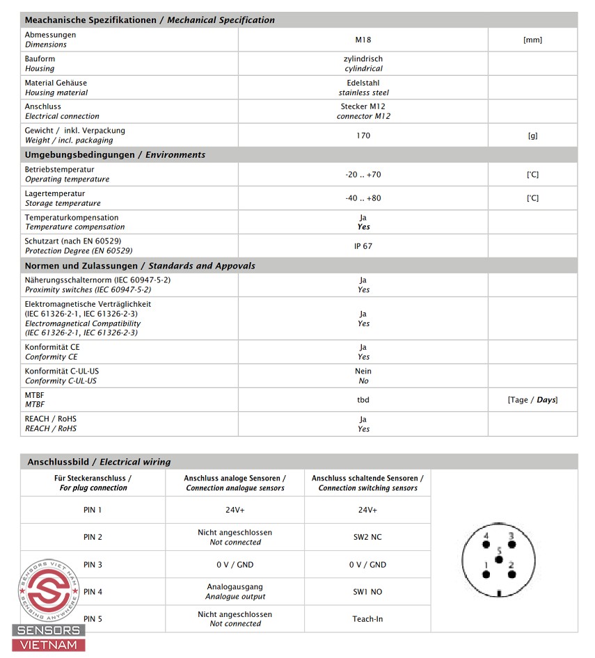 Mức độ bảo vệ cao IP68 / IP69K cho phép làm sạch toàn diện cảm biến. Với phạm vi lên đến 2500 mm và phạm vi nhiệt độ cao lên đến + 80 ° C, cảm biến phù hợp với nhiều ứng dụng.