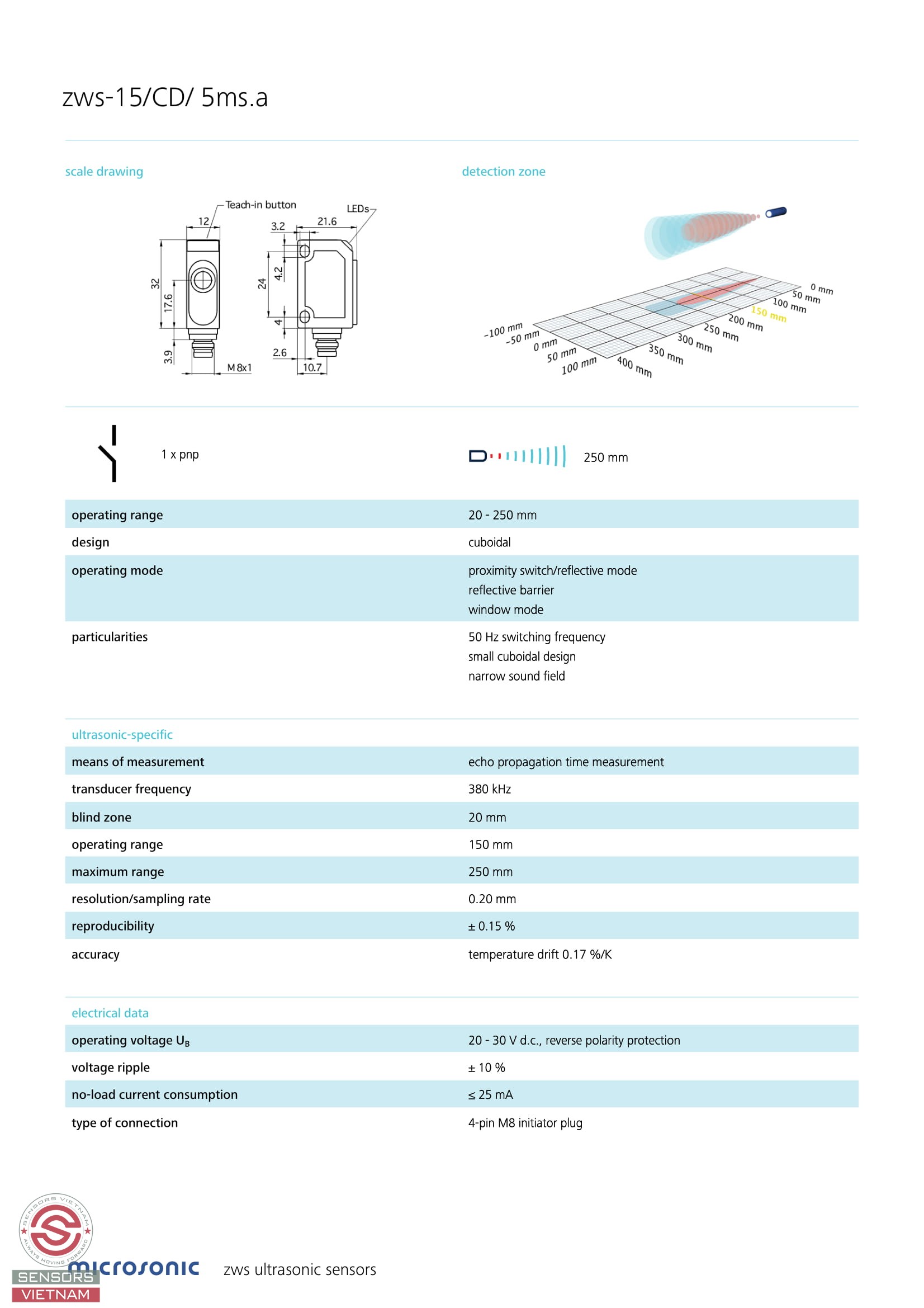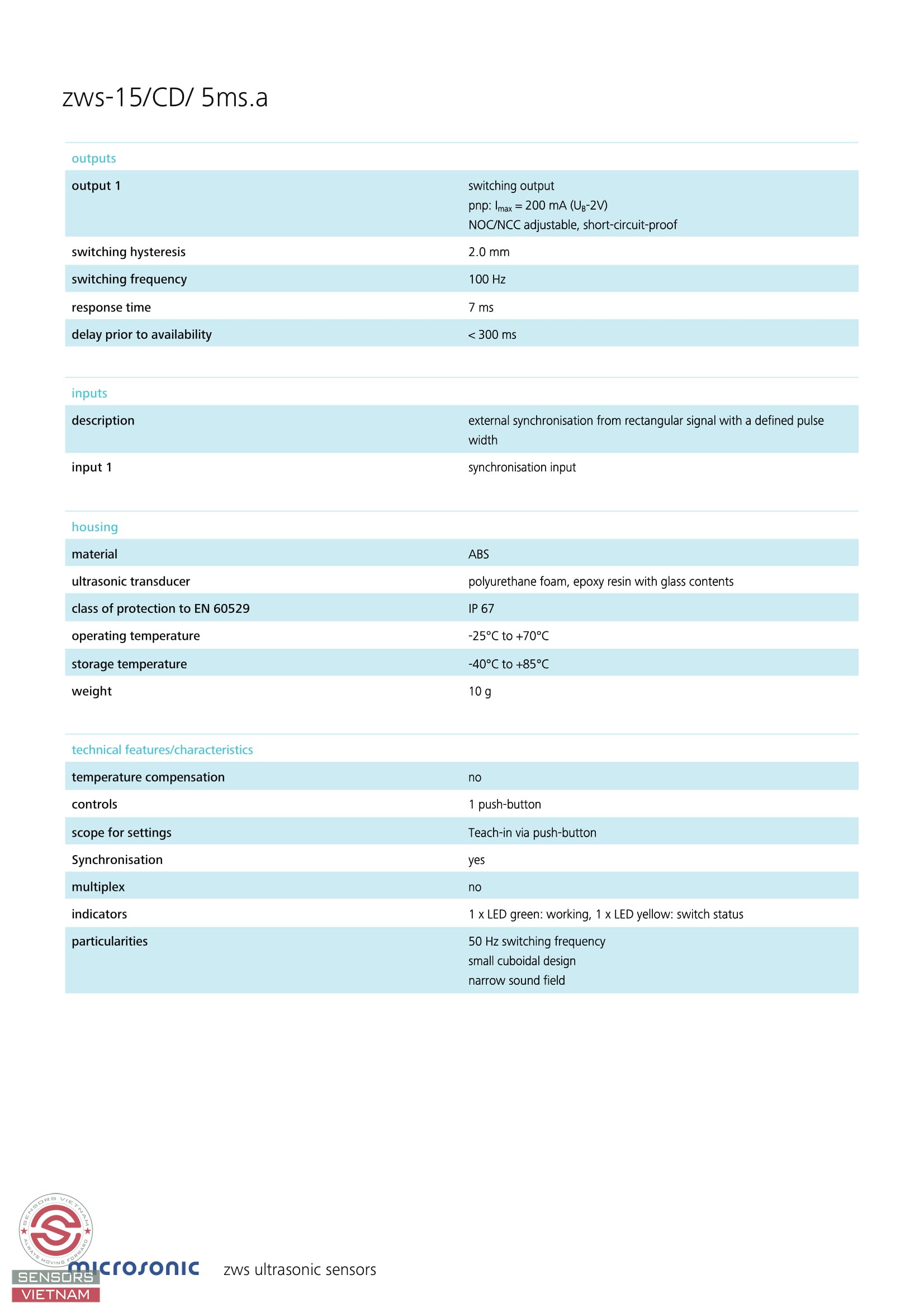 Cảm biến siêu âm zws-15/CD/ 5ms.a