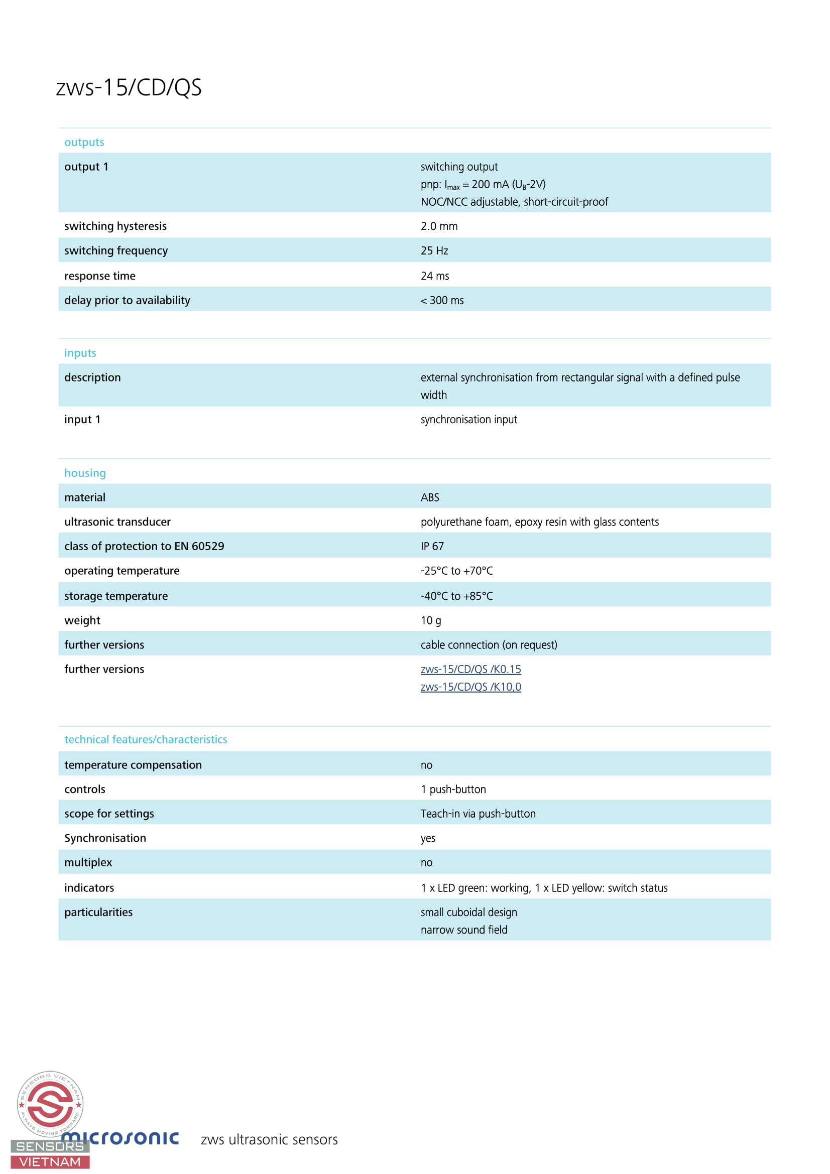 Cảm biến siêu âm zws-15/CD/QS