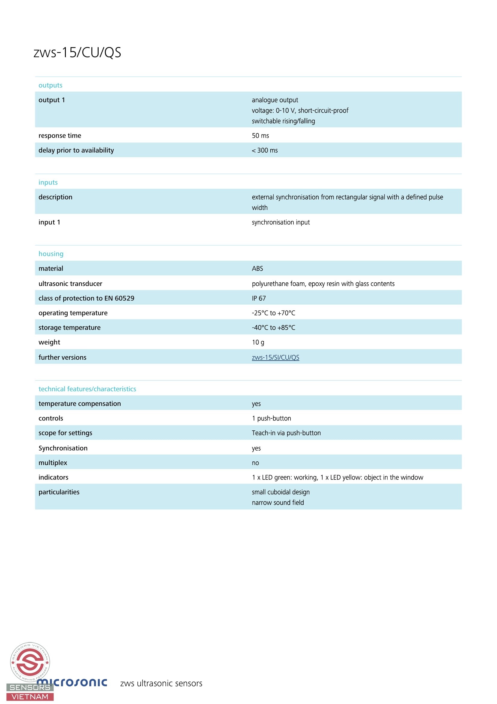 Cảm biến siêu âm zws-15/CU/QS