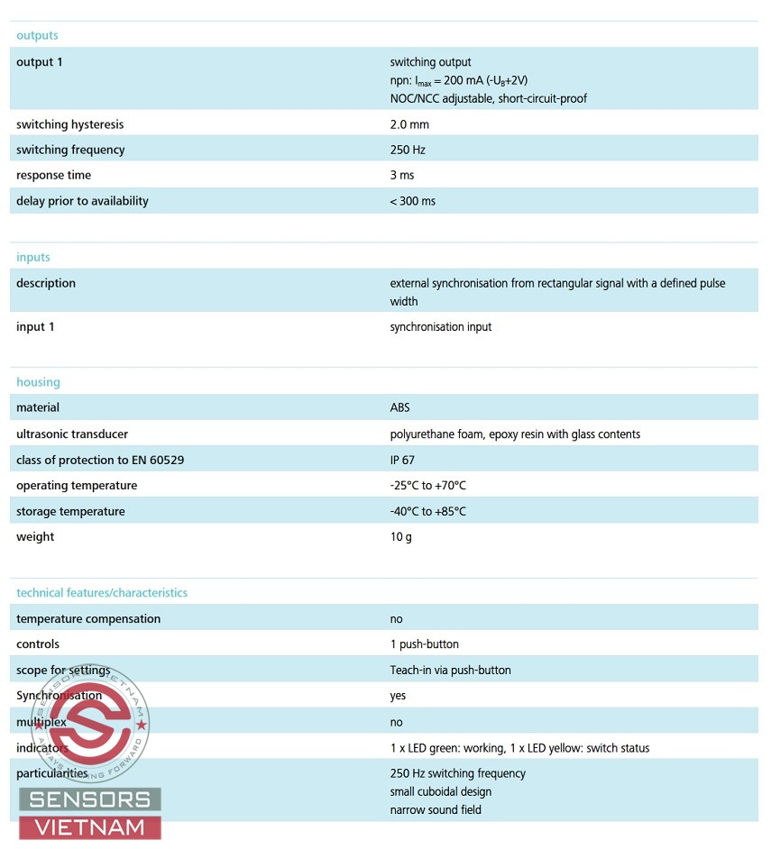 Mô tả: Cảm biến là gì? Cảm biến là một trong ba thành phần cơ bản của hệ thống điều khiển. Cảm biến là thiết bị điện tử cảm nhận những trạng thái hay quá trình vật lý hay hóa sang tín hiệu điện có thể đo lường được. Sensors Việt Nam chuyên phân phối cảm biến Siêu âm Microsonic (Germany) tại Việt Nam, Đại lý cảm biến siêu âm Microsonic, phân phối cảm biến Microsonic, Cảm biến Siêu âm ZWS 7 với dải đo trong khoảng 20-100mm.